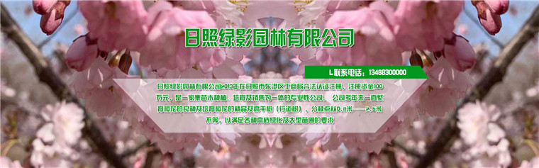 日照绿影园林有限公司2013年在日照市东港区工商局合法注册,注册资金100万元,是一家集苗木种植、培育及销售为一体公司。 公司多年来一直繁育樱花的良种及培育樱花高干树,分枝点从0.8米---2.5米不等,以绿化及大型苗圃的要求,所培育的品种有:早春樱类:启翁樱、河津樱、椿寒樱、寒绯樱、八重寒绯樱、福建山樱花、尾叶樱、大寒樱、迎春樱、大渔樱、红山樱等。阳春樱类:大岛樱、八重红大岛樱、阳光樱、思川樱、染井吉野樱、江户彼岸樱、御帝吉野樱、飞寒樱、横滨绯樱、美利坚樱、十月樱、红绯衣樱、山樱枝垂、吉野枝垂、一叶、八重红枝垂、雨情枝垂、八重红彼岸樱、白妙樱等。晚春樱类:红笠、松月樱、菊枝垂樱、红华樱、郁金樱、关山樱、麒麟樱、花笠、普贤象樱、红手毬樱、御衣黄樱、兼六园菊樱、红叶樱、须磨普贤象樱等。多新品种正在培育驯化中! 另外公司可长期为您提供1--30公分的各品种樱花大树。绿影园林有限公司经过多年的发展和用心经营现、规范种植,研究出科学的管理种植。所引进选育樱花品种,注重树形优美、花期变…